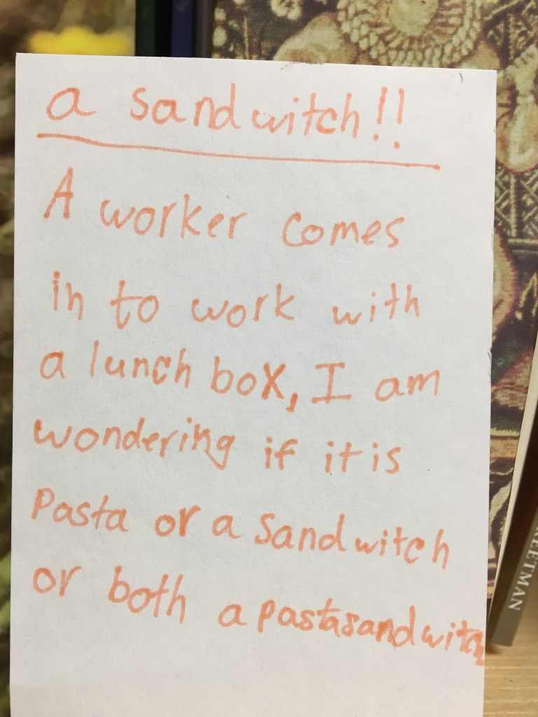Episode 6: Pasta Sandwitch explores this pondering from a museum visitor, which creates a wealth of other ponderings about sandwiches, exclamation points and lunch boxes.