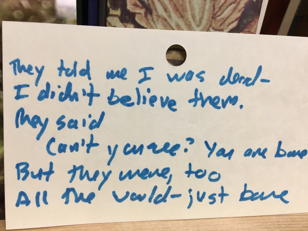 Episode 150: Populate Your Mind is about a sad and lovely poem written many years ago and found in a box of auction items. We discuss loneliness and the remedy of populating one’s mind with poetry and books and conversation to be at peace with the feeling. Tad bits of wacky ensue, as always.