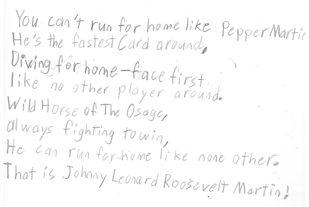 Episode 30: Pepper Martin highlights a 1930’s major league baseball sensation Pepper Martin, whom we learned about from a poem by Glenpool poet Gordon Bryan. Play ball! And poetry! And baseball haiku!