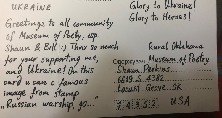 Episode 24: Ukraine Testament describes a postcard the museum received from Ukraine in 2014 and how the poetry and sorrow of it has arrived here in our present times.