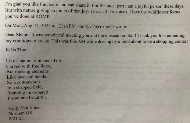 Episode 136: Just Because! was inspired by a donation and a unique poem that went with it–both mailed to the Rural Oklahoma Museum of Poetry. What mundane words: “Just Because.” How wonderful, varied, and inspiring they can be? Check it out and see.