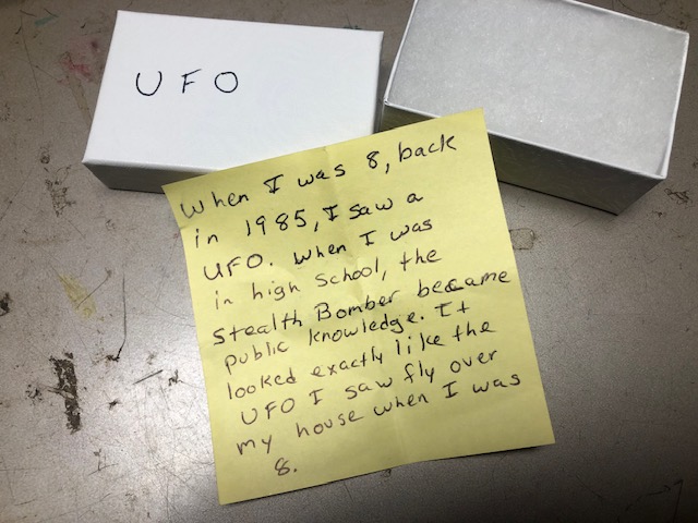 Episode 134: Uh Oh, UFOs begins with a post-it note poem written and folded into a jewelry box and left in the museum for us all to ponder. “When I was 8″….do you remember when you were 8? Do you know what flies through the skies above us? Let’s discover it in poetry and wackily informative conversation.